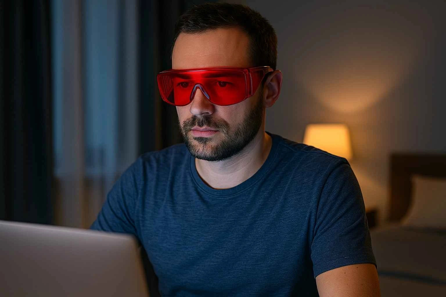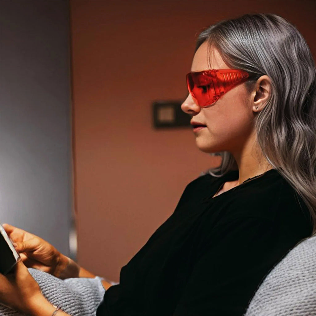 The red lenses help reduce harsh light from screens and indoor lighting, promoting a more natural melatonin cycle.